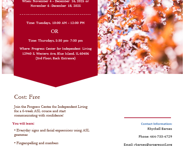 Join Progress Center for Independent Living for a 6-week ASL course and start communicating with confidence!