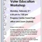 For more information, directions to our office or the Zoom link, call Progress Center’s Community Organizer Clark Craig at 708-209-1500 or email info@progresscil.org.